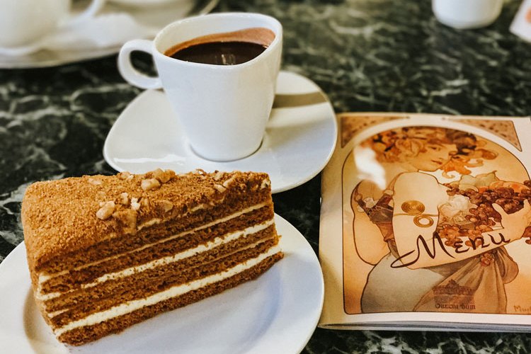 A dos minutos de la plaza antigua, STAROMESTE, tienes un lugar encantador donde podrás resguardarte del frío mientras meriendas algo rico. Tienes un montón de tartas para elegir.