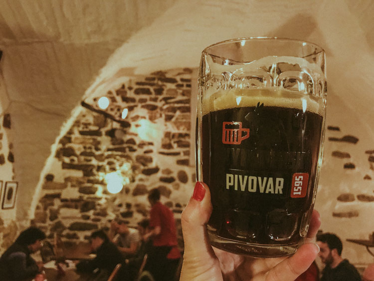 Uno de los días, hicimos un freetour por el centro. A mitad de recorrido, nos llevaron a ésta cervecería pivovar, muy cerca de la plaza vieja y escondida en un callejón.